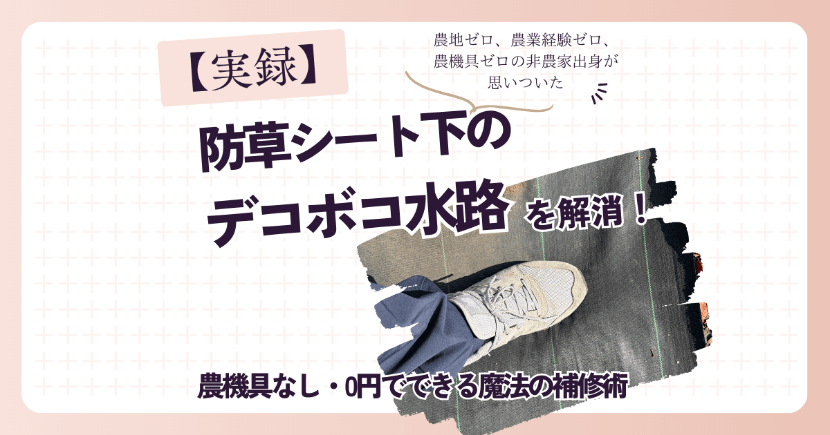 こんにちは。元保健師の私が、農地ゼロ、農業経験ゼロ、農機具ゼロながらブルーベリー園を開園し2年。ようやく形になってきたと思った矢先、予想もしなかったトラブルに直面しました。それは、防草シートの下にできた「見えない水路」です…。