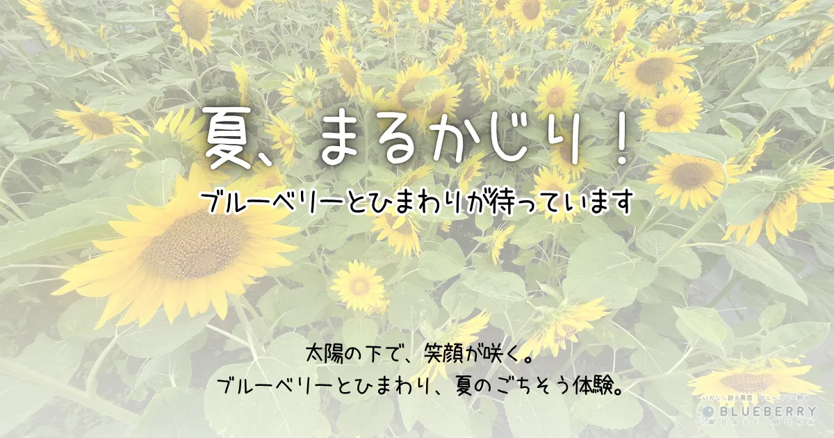 7月に入り、いよいよ夏本番です。栃木県真岡市は7月8日現在、まだ梅雨明け宣言は出ていませんが、ブルーベリーたちはとても元気においしい実をならせています。農園では、ひまわりも満開を迎え、夏の思い出を彩ってくれますね。また、夏の営業に向けて当農園の工夫もお伝えします。