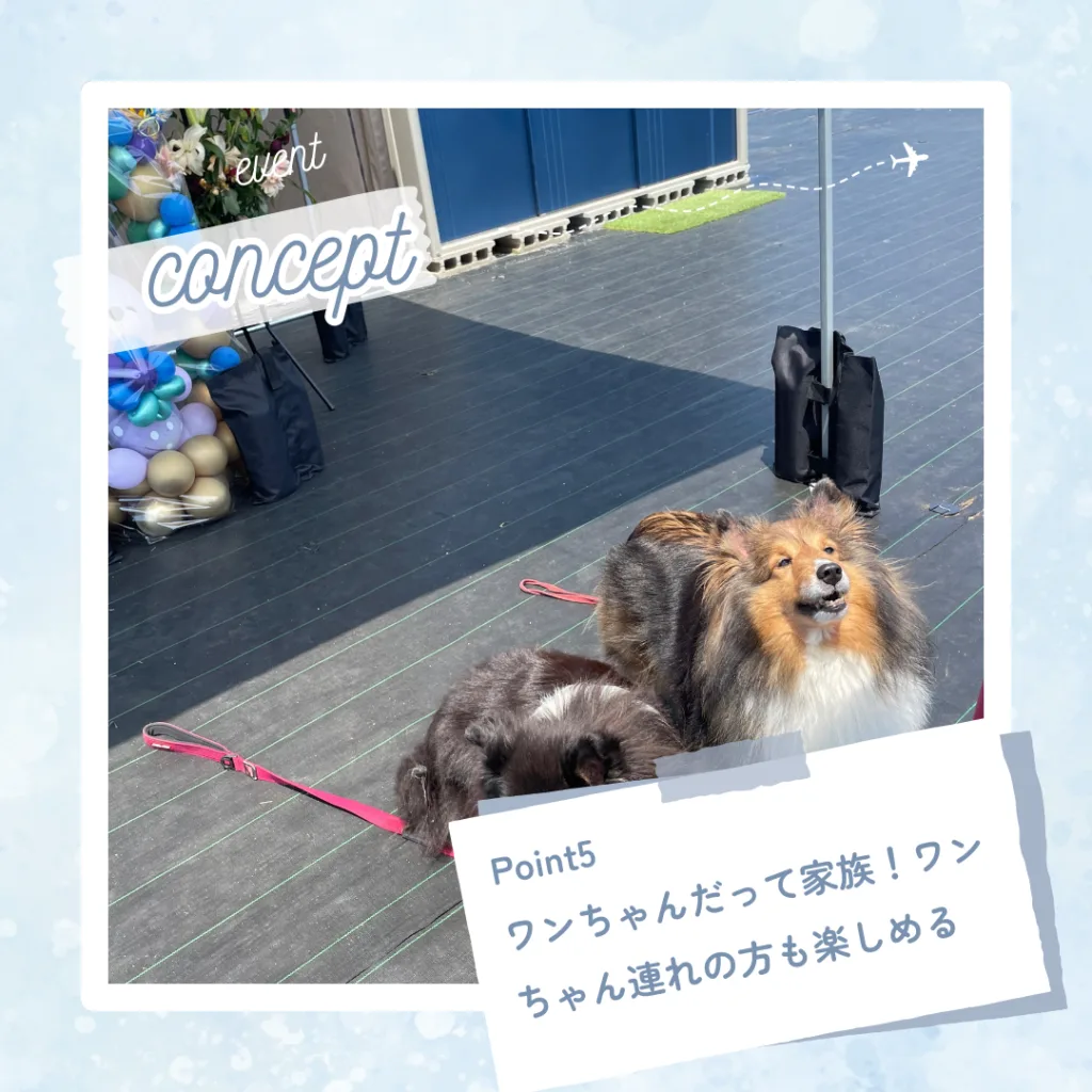 ワンちゃんの入園料は無料です。ワンちゃんは必ずリードをつけた上で、カートまたはオムツ着用でお願いします。photoスポットもご用意しました♪