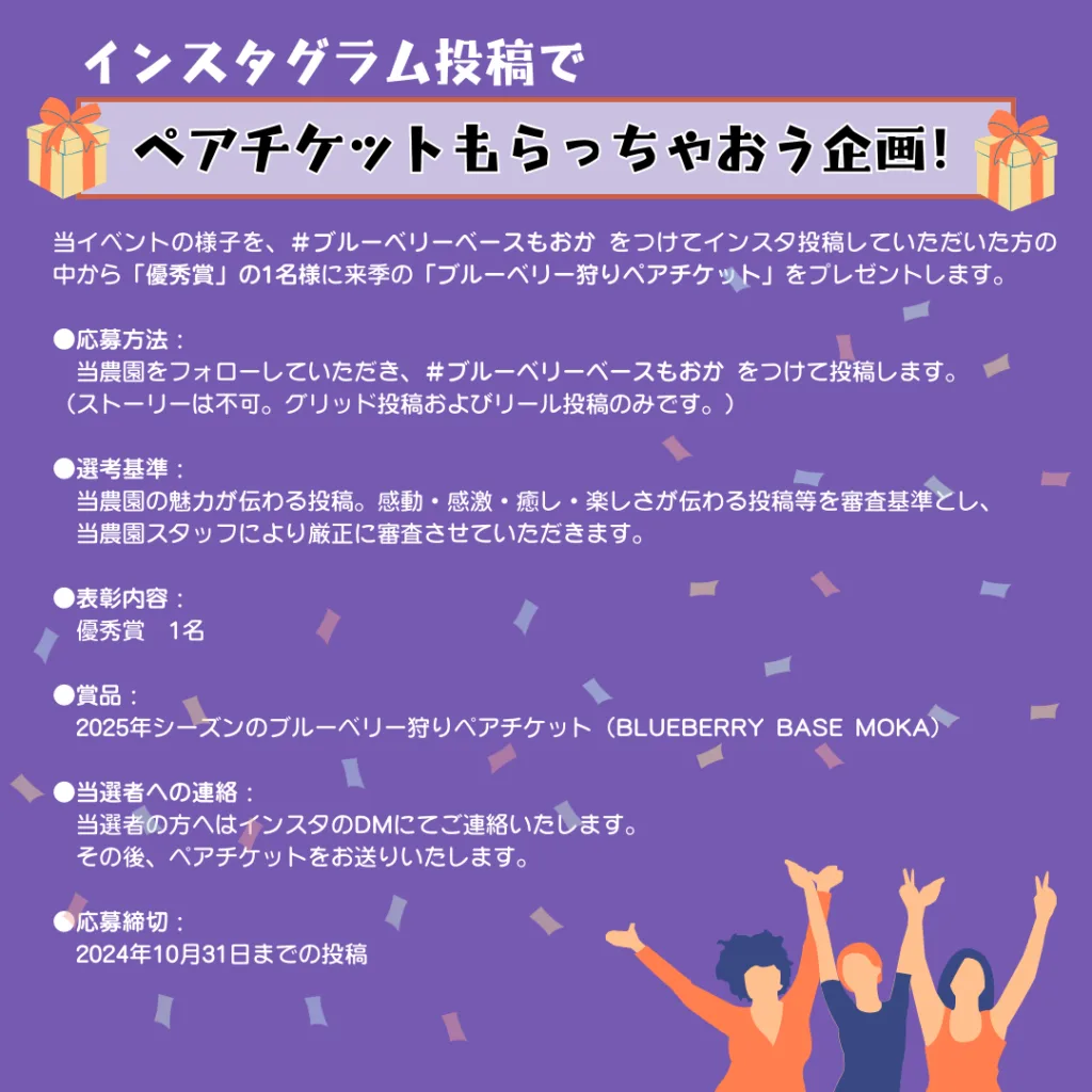 #ブルーベリーベースもおか のハッシュタグをつけて、インスタ投稿してください!ご応募お待ちしております!