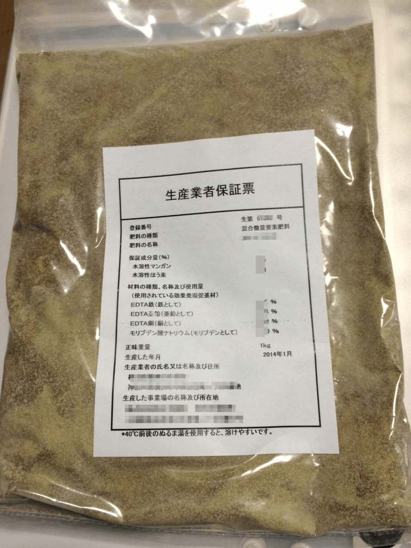 - 微量要素の粉末は直接ポリタンク投入でも問題なし。